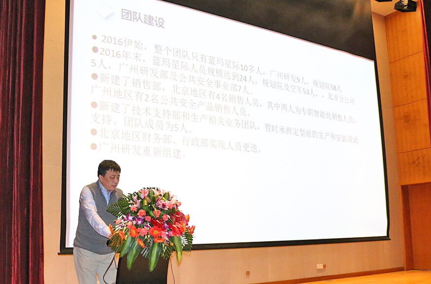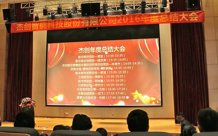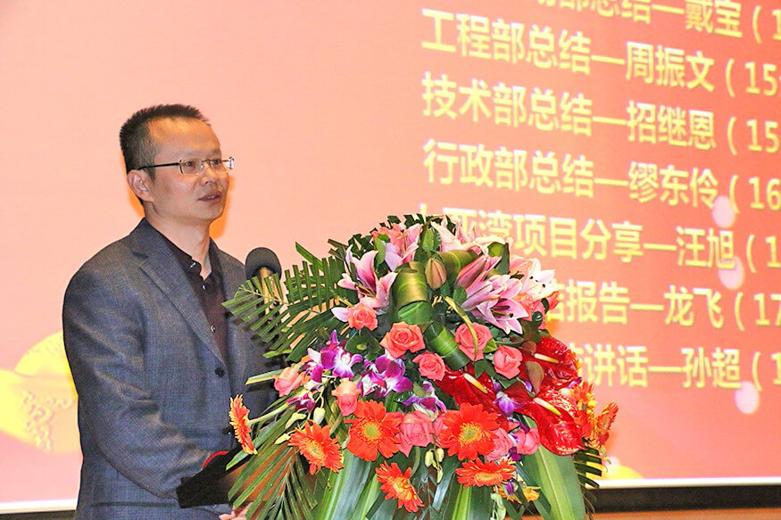 总结大会上,在公司副总裁戴宝先生激情洋溢的开场白后,副总裁钱洪涛先生、星空电竞xingkong智能董事兼蓝玛星际总经理朱勇杰先生、财务总监兼董秘李卓屏女士、副总裁戴宝先生、工程部总监周振文先生、技术部总监招继恩先生、行政部总监缪东伶女士、工程部副总监汪旭先生、总裁龙飞先生先后登台,分别做了2016年度工作总结。